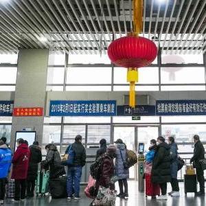 12月20日,在北京四惠長途客運站,旅客在排隊檢票。