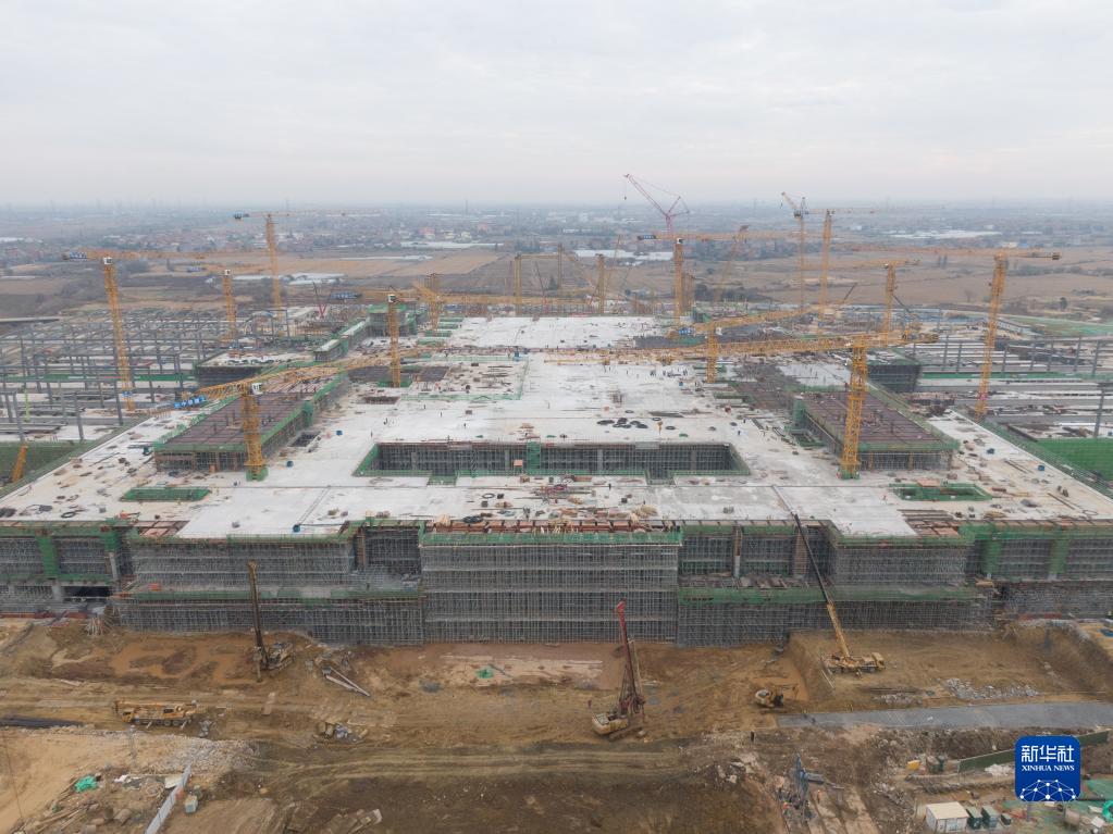 這是12月20日拍攝的封頂后的南昌東站(無人機照片)。