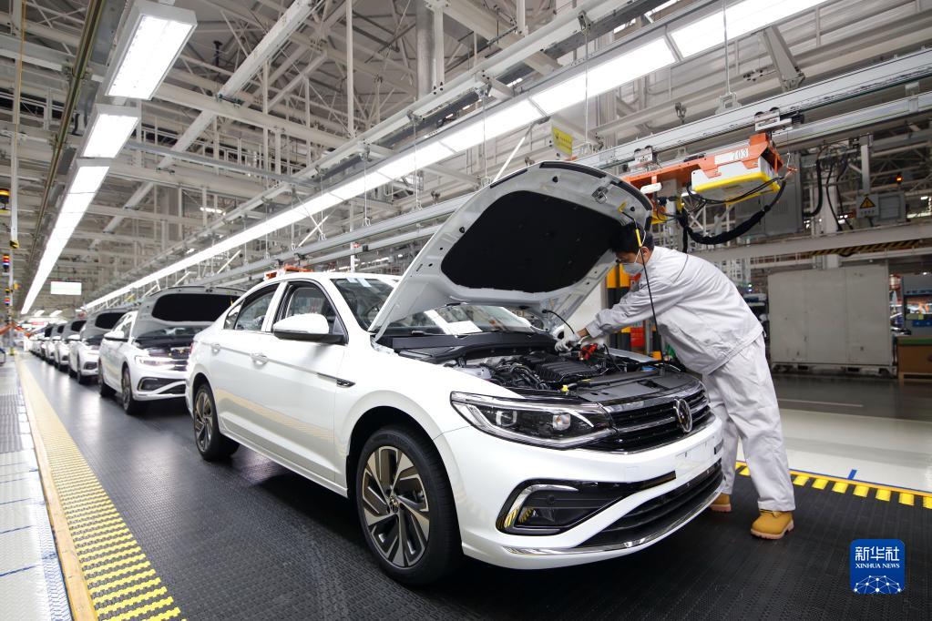 12月20日,在位于山東省青島市即墨區的一汽—大眾華東基地總裝車間,工人在裝配汽車。