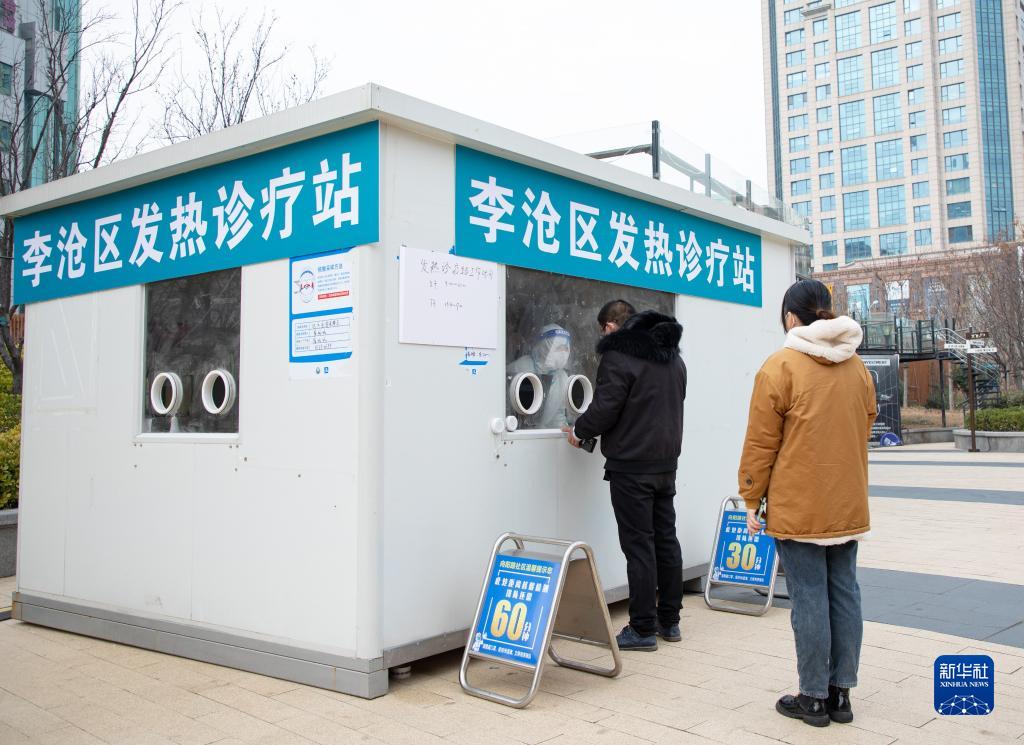 12月20日,市民在山東省青島市李滄區一處發熱診療站排隊就診。
