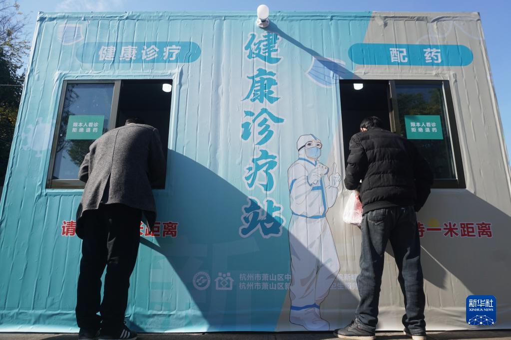 12月20日,市民在杭州市蕭山區一處健康診療站就診、取藥。