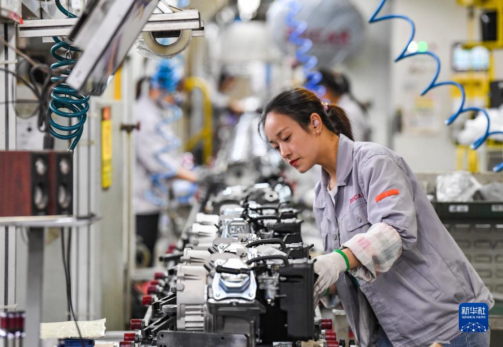 10月19日,在位于重慶市璧山區的一家動力設備制造企業,工人在生產車間作業。