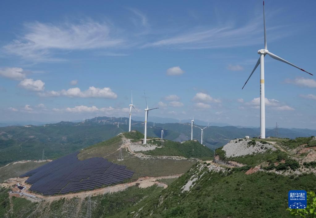 8月17日,在河北省秦皇島市青龍滿族自治縣草碾鄉華山村附近的荒山上,工人在150兆瓦光伏發電站建設工地施工。