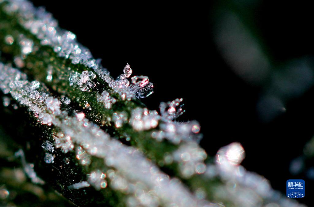 12月18日,山東省鄒平市一片麥田里的麥苗結了冰花。