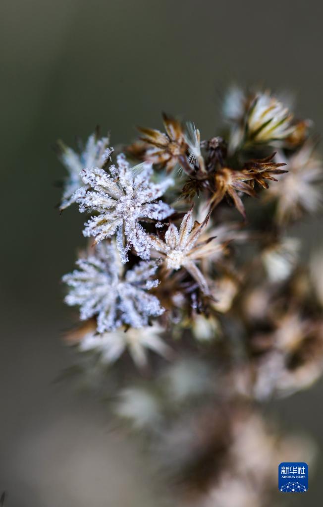 12月18日,在貴州省岑鞏縣天馬鎮天馬村,植物結出霜花。