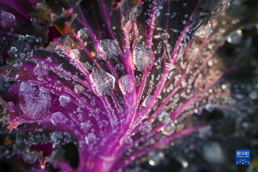 12月17日,江蘇省揚州市瘦西湖風景區的植物結冰花。