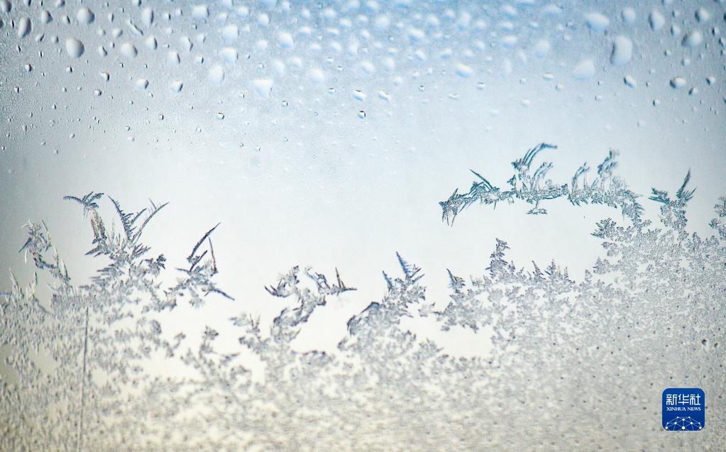 12月4日,在天津市薊州區,玻璃表面結出冰花。