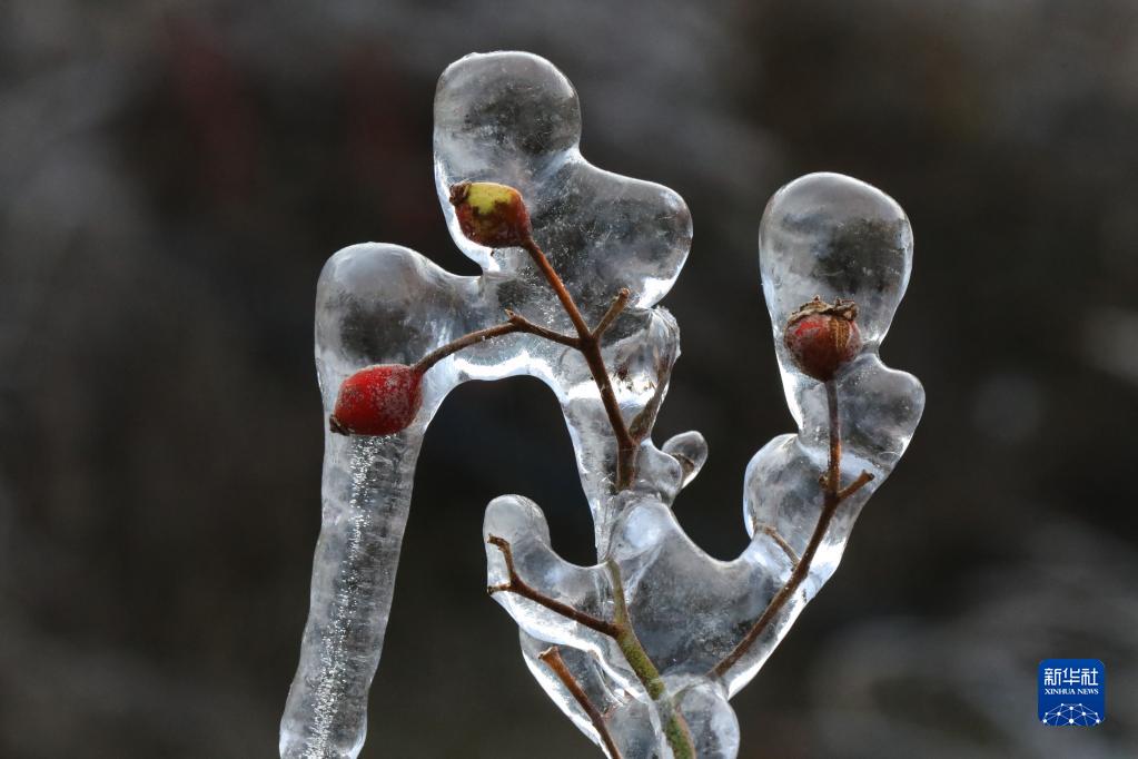 12月16日,云南省騰沖市馬站鄉云華村的植物被冰封凍。