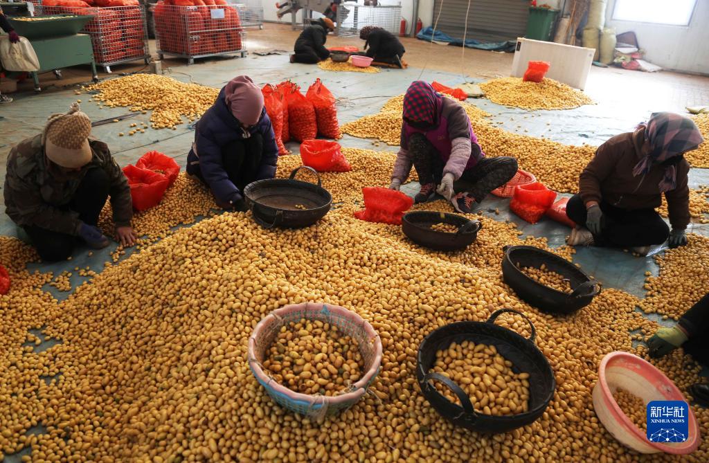 12月20日,在定西市安定區香泉鎮馬鈴薯產業園內,工人在篩選馬鈴薯原原種。
