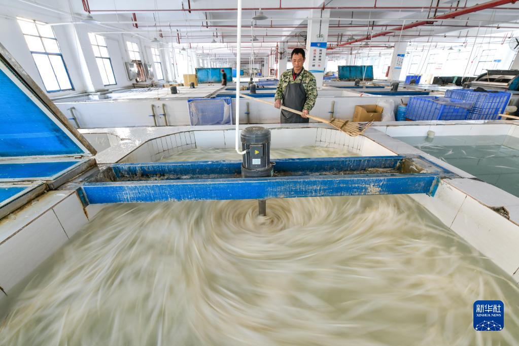 在錦屏經濟開發區貴州亞獅龍體育文化產業發展有限公司羽毛球生產基地,工人在清洗鵝毛(12月19日攝)。