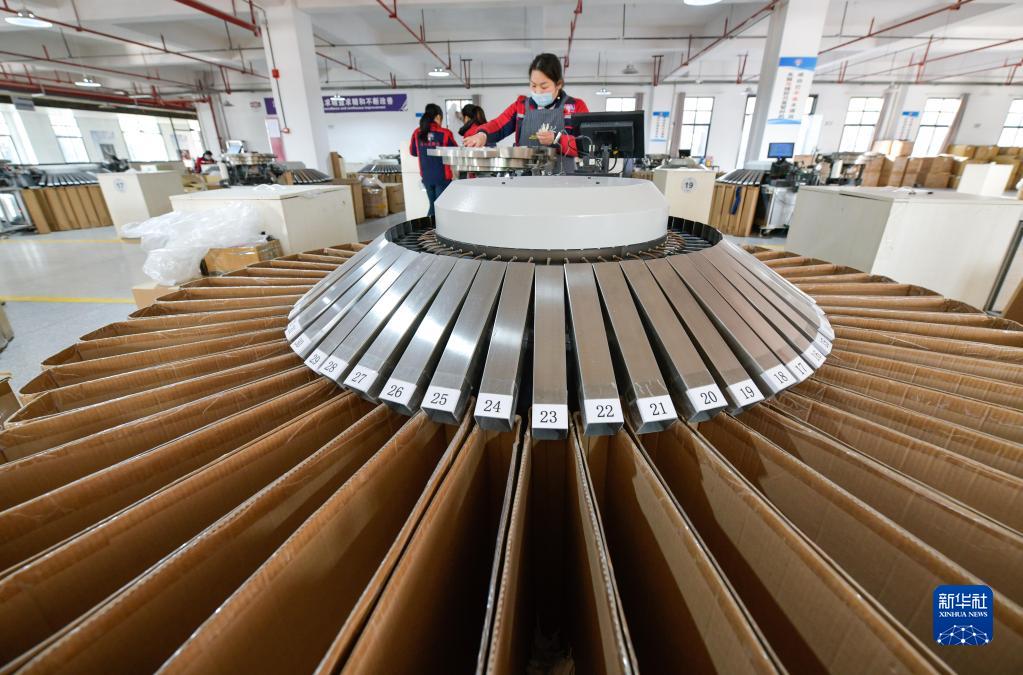在錦屏經濟開發區貴州亞獅龍體育文化產業發展有限公司羽毛球生產基地,工人在生產羽毛球(12月19日攝)。