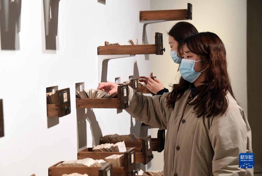 12月21日,在北京時代美術館,觀眾在《聲·生》當代藝術展中與藝術作品互動。