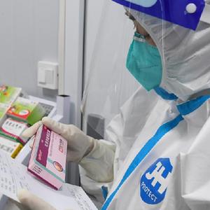 ??12月21日,市民在陜西省西安市蓮湖區一流動發熱診療車前領取藥品。