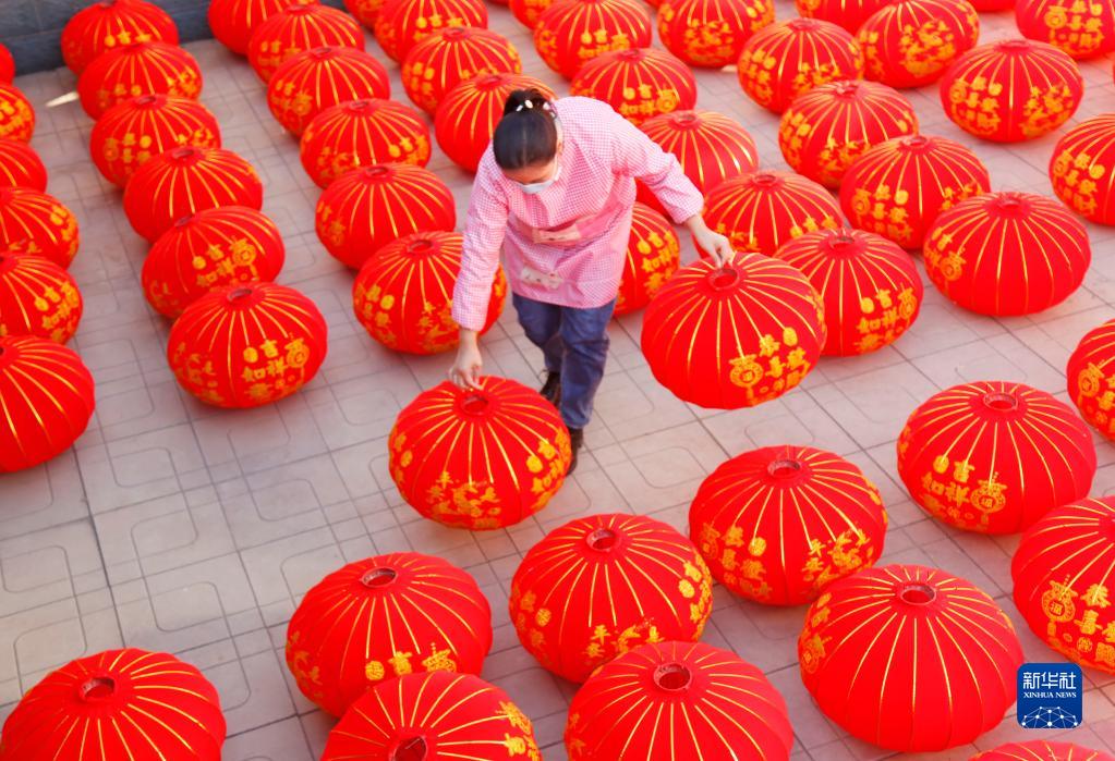 12月22日,邢臺市南和區東三召鄉西任城村村民在晾曬燈籠。