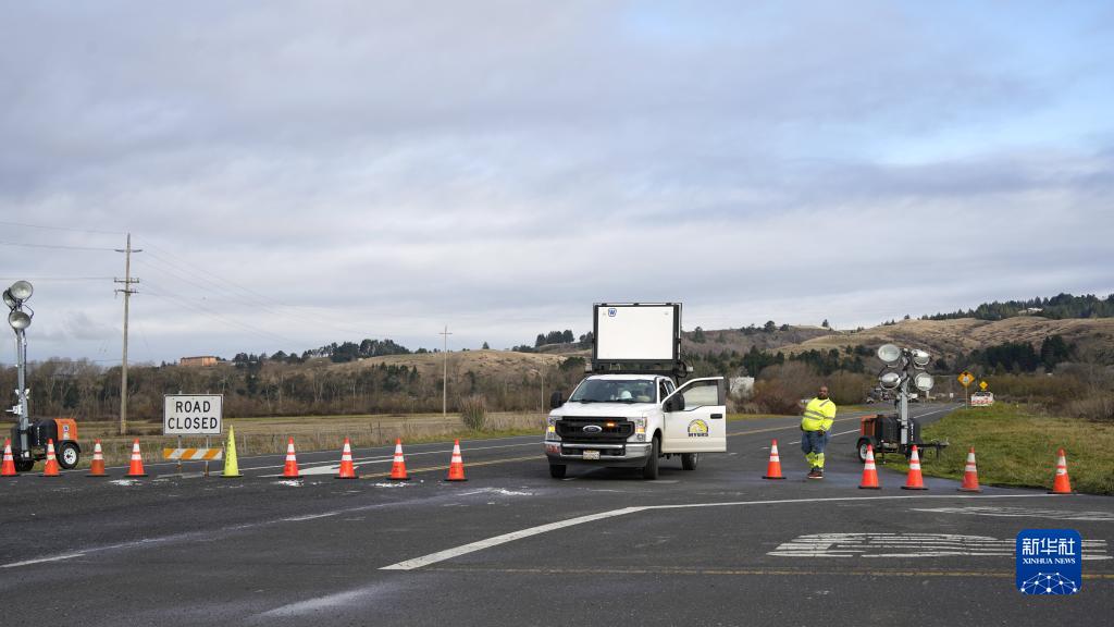 12月21日,在美國加利福尼亞州北部,通往芬代爾橋的公路因橋梁被地震損壞而關閉。