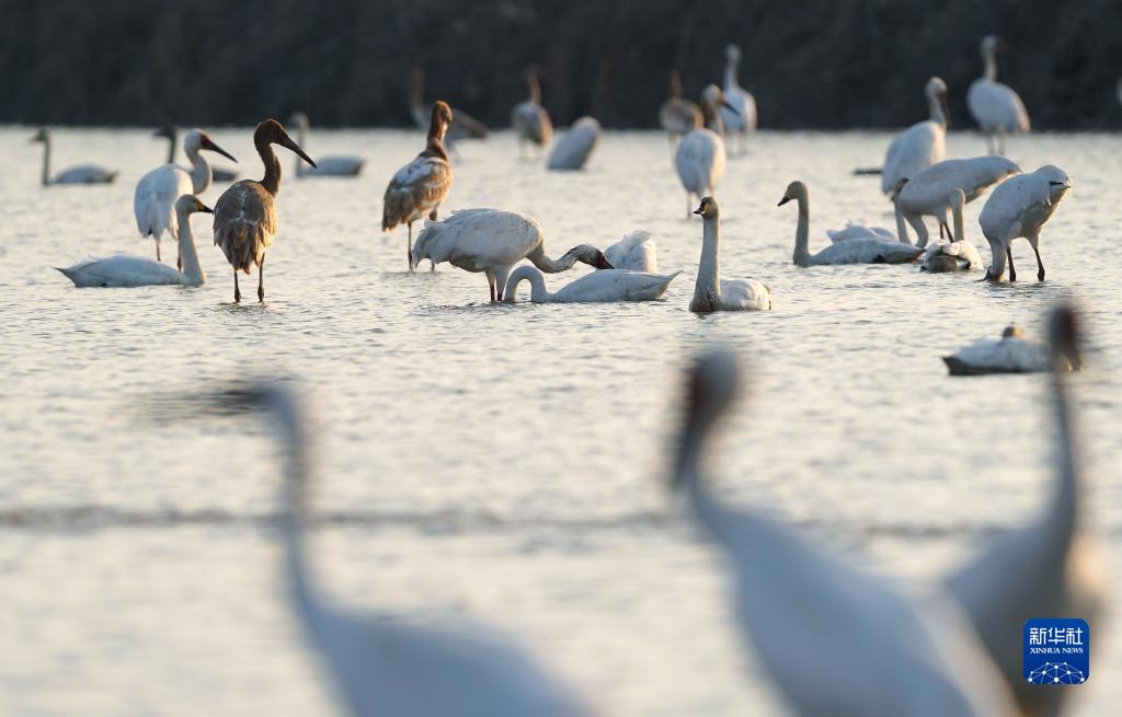 在鄱陽湖畔的五星白鶴保護小區,成百上千只候鳥歡快地嬉戲覓食,享受著鄱陽湖畔的冬日暖陽。鄱陽湖今年遭遇持續干旱,為保護越冬候鳥,愛鳥人士將候鳥常來的藕塘租下來,擴建五星白鶴保護小區,周邊的稻田也只種不收,留給候鳥作食物……這一系列舉措保障了候鳥在此棲息越冬。