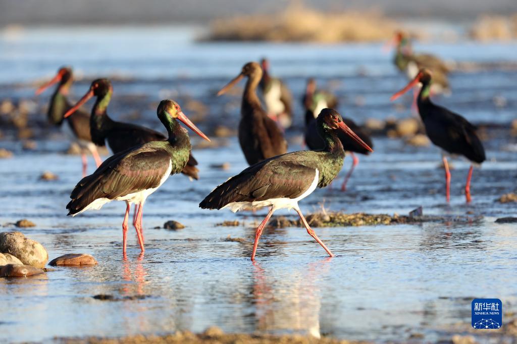 近日,近百只黑鸛飛抵河北省井陘縣綿蔓河一帶棲息越冬。黑鸛是世界瀕危珍禽,屬國家一級重點保護野生動物,因數量稀少,被稱為“鳥中大熊貓”。近年來,井陘縣持續推進生態環境治理,維護河湖生態平衡,吸引許多珍稀鳥類前來棲息。