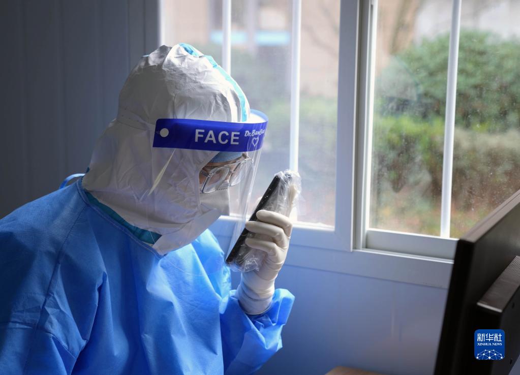 12月21日,在上海市浦錦社區衛生服務中心的發熱哨點診室,龍永術在看診間隙接聽居民的咨詢電話。