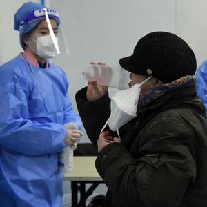 12月21日,在北京市海淀區海淀街道新冠疫苗接種點,市民接種吸入式新冠疫苗。