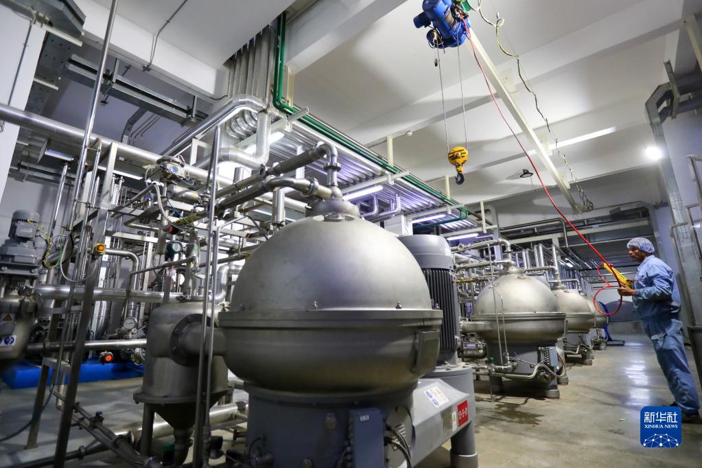 12月21日,工人在安琪酵母(埃及)有限公司位于埃及貝尼蘇韋夫省的酵母抽提物生產車間工作。