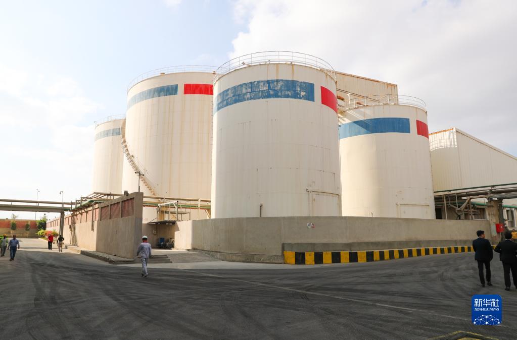 這是12月21日在埃及貝尼蘇韋夫省拍攝的安琪酵母(埃及)有限公司用于存儲生產酵母原料的罐子。