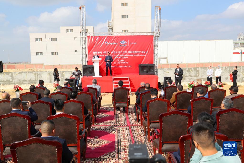 這是12月21日在埃及貝尼蘇韋夫省拍攝的安琪酵母(埃及)有限公司年產2萬噸酵母制品擴建項目開工儀式現場。