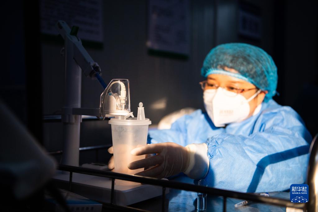 12月22日,在長沙市天心區南托街道社區衛生服務中心,醫務人員在霧化疫苗。