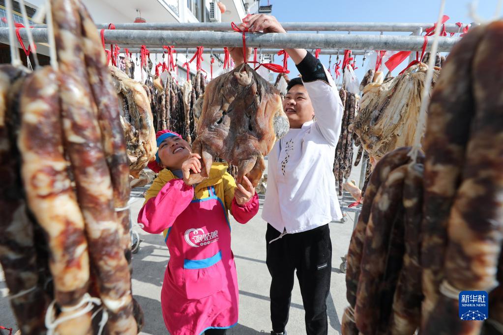 冬至時節,人們忙著制作、晾曬臘肉、臘腸、魚干等地方特色傳統食物,供應節日市場。
