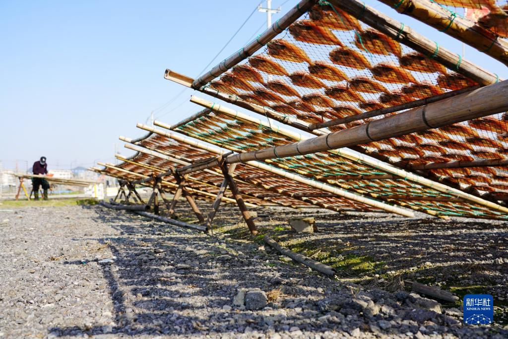 12月22日,浙江省樂清市天成街道萬澤村的農戶在翻曬魚干。