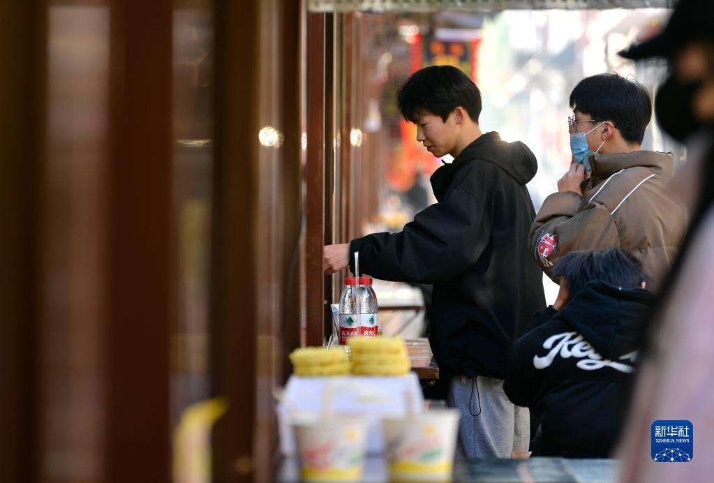 12月21日,在宣恩縣民族風情街,市民在“地攤小屋”前購買食品。