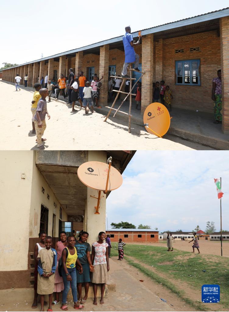 下圖:這是2022年10月31日在布隆迪布瓊布拉鄉村省穆蒂姆布齊一村莊拍攝的村民和衛星電視接收器。新華社記者 董江輝 攝