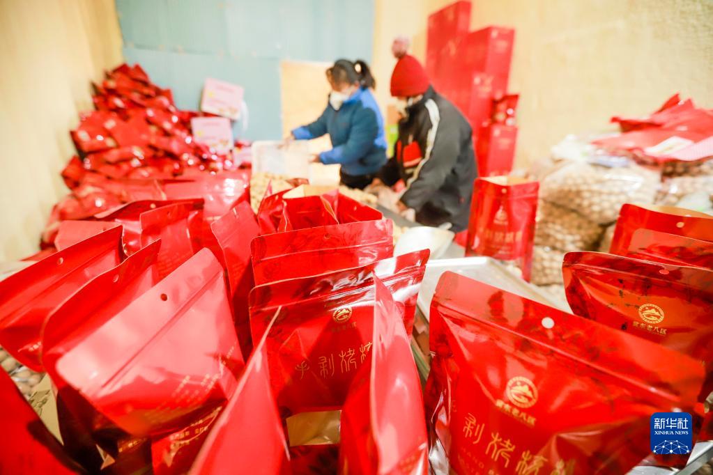 12月23日,農民在遵化市東舊寨鎮石橋頭村一家核桃專業合作社的車間整理熟核桃,準備裝袋。