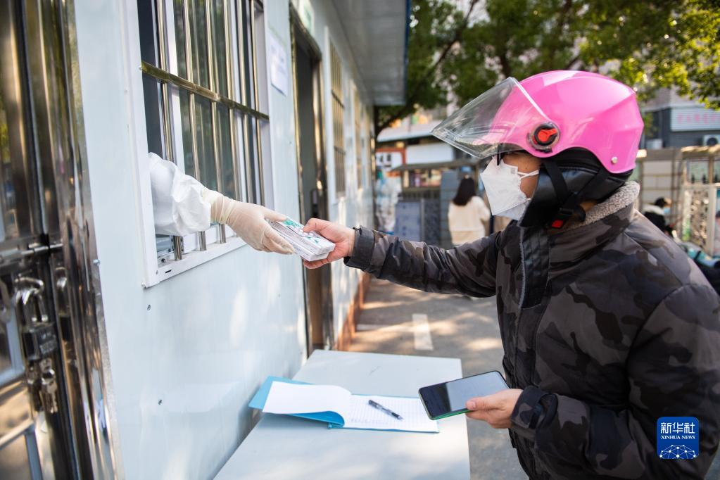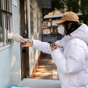 12月23日,在長沙市湘江新區望岳街道社區衛生服務中心,市民在領取防疫健康包。
