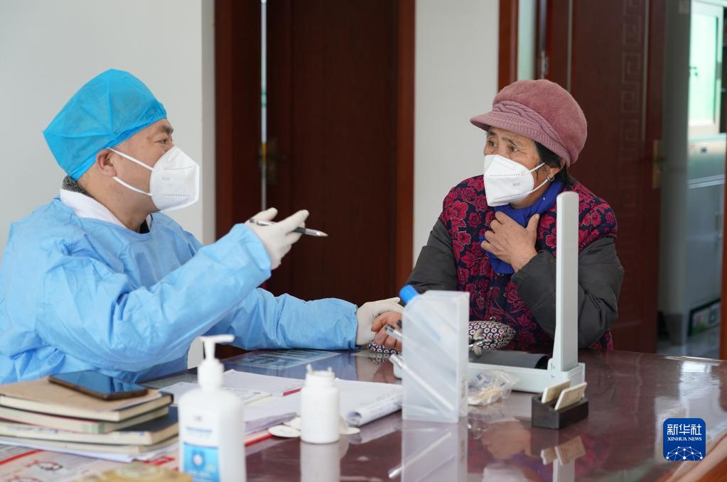 12月22日,在周至縣馬召鎮富饒村東富饒衛生室內,村醫在為發熱患者進行診療。