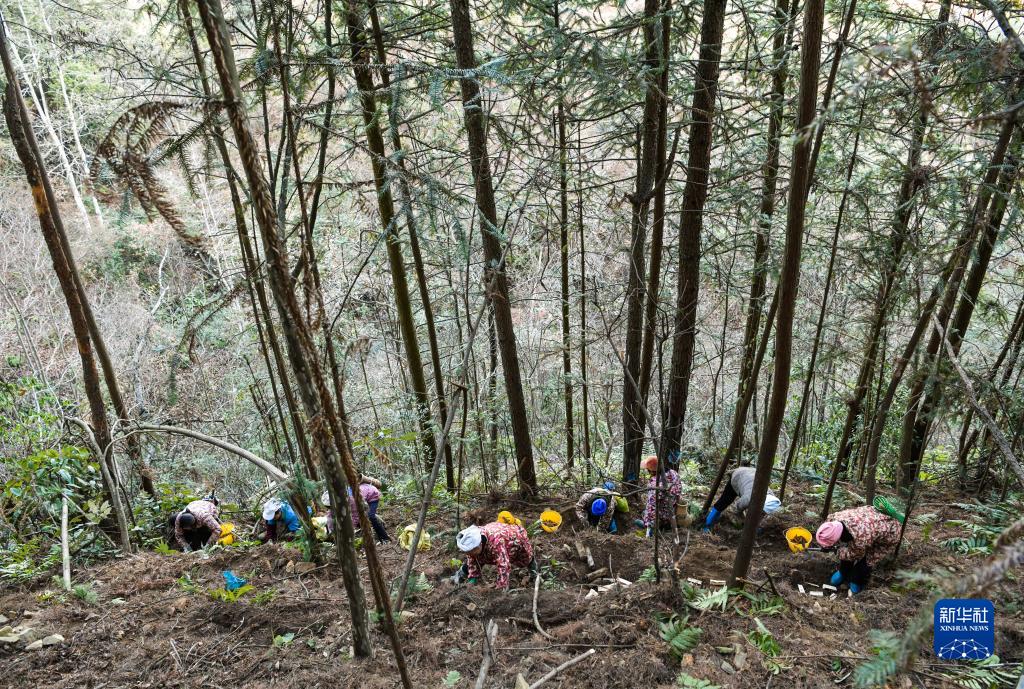 12月21日,農民在貴州省黎平縣九潮鎮萬寶山天麻種植基地勞作。