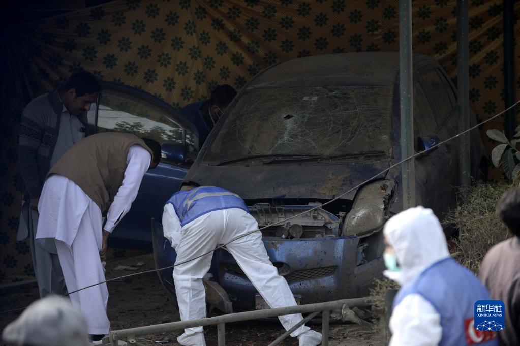 12月23日,安全人員在巴基斯坦伊斯蘭堡的自殺式爆炸襲擊事件現場調查。