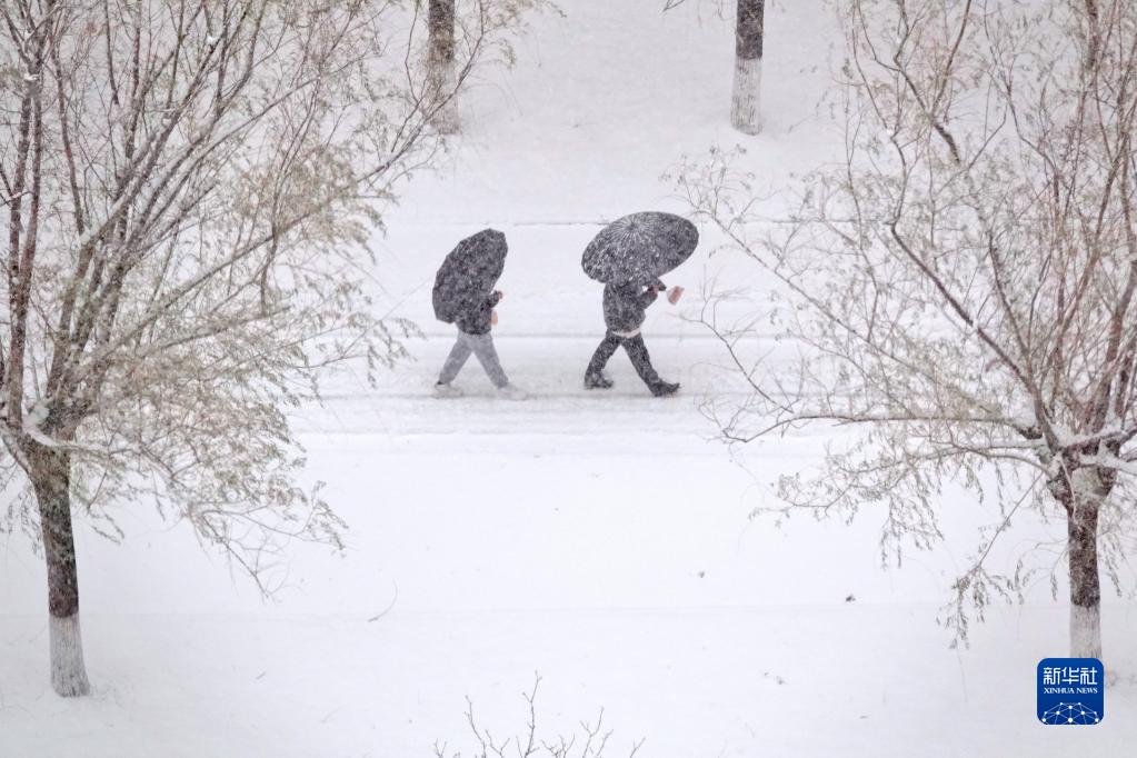 12月22日,山東煙臺市民冒雪出行。