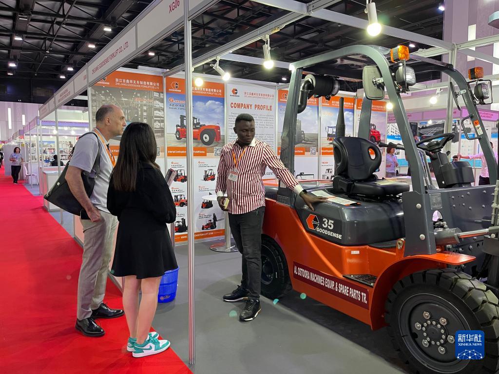 12月20日,在阿聯酋迪拜,采購商在第十三屆中國(阿聯酋)貿易博覽會上觀看展品。