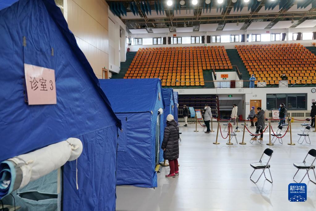 近日,為方便發熱患者就醫,保障群眾就醫需求,北京市部分醫院在體育館里開設簡易發熱門診,為市民提供診療、開藥等服務。