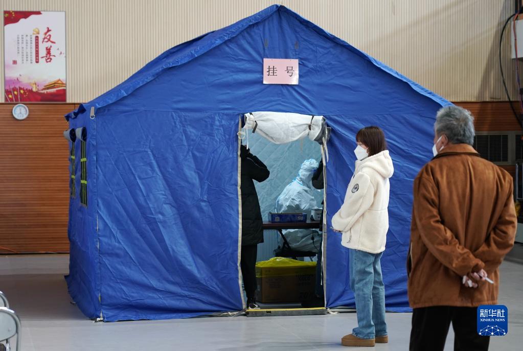 近日,為方便發熱患者就醫,保障群眾就醫需求,北京市部分醫院在體育館里開設簡易發熱門診,為市民提供診療、開藥等服務。