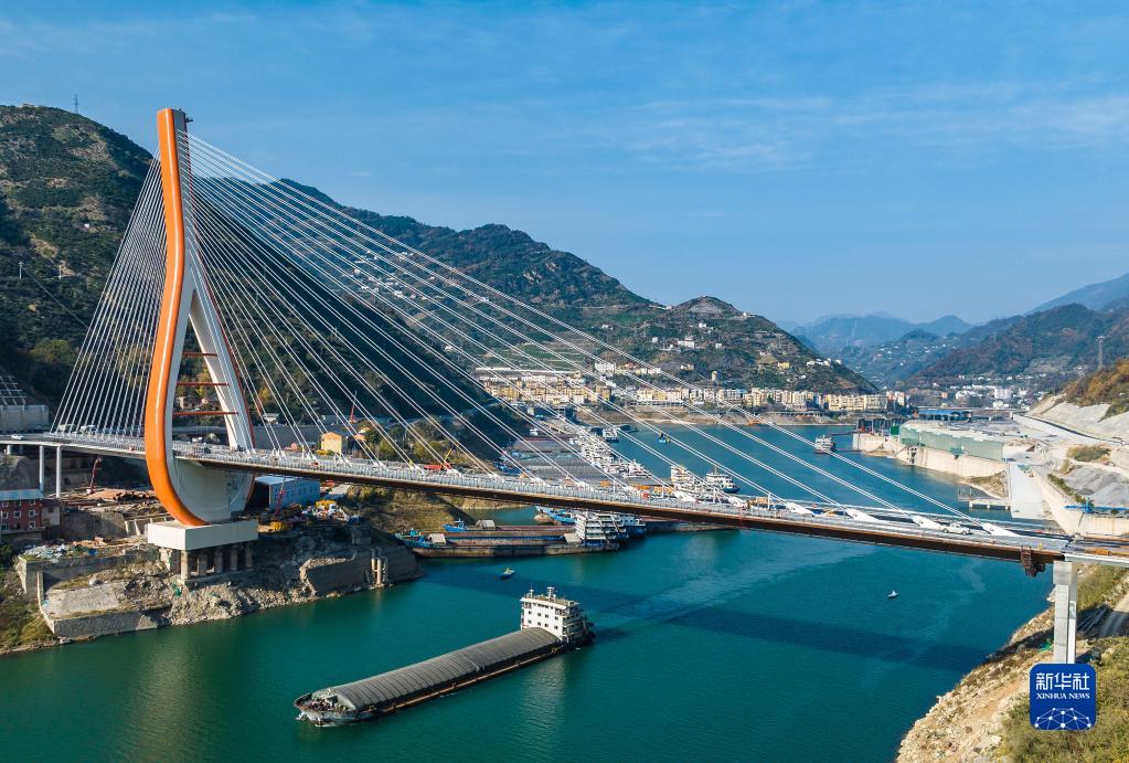 湖北省宜昌市香溪河上“琵琶形”獨塔斜拉橋主體結構基本建成,塔身采用順橋向傾斜10度的琵琶造型。香溪河因昭君出塞而得名,是長江的支流,從長江三峽西陵峽上游峽口匯入長江。該橋是連接宜昌市興山縣和秭歸縣的重點交通樞紐工程。