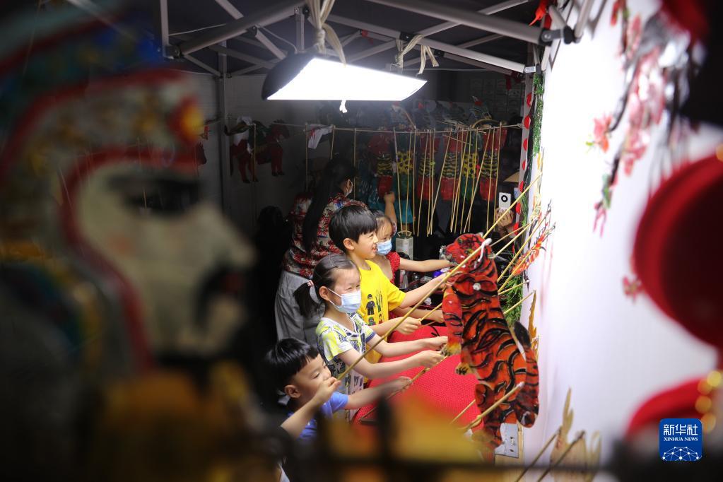 2022年6月11日,文化和自然遺產日,小朋友在位于合肥市的安徽博物院體驗皮影戲,感受傳統文化的魅力。