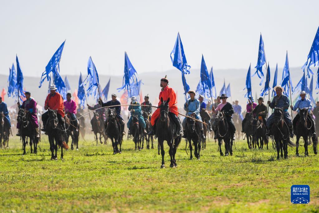 2022年7月29日,內蒙古自治區第32屆旅游那達慕在錫林郭勒盟錫林浩特市開幕,群眾馬隊方陣在開幕式上表演。如今,文化、旅游融合已成為推進內蒙古旅游產業轉型升級、可持續發展的驅動力和“催化劑”。
