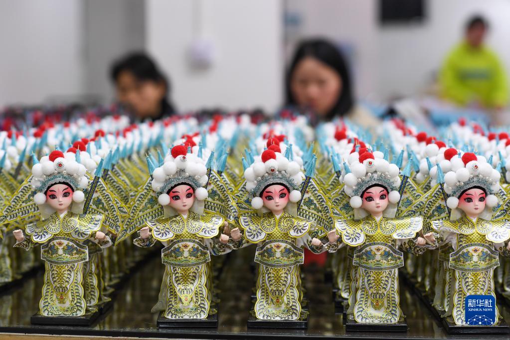 2022年3月1日,在貴州省黔南布依族苗族自治州惠水縣幸福移民社區的唐人坊產教融合基地,工人在驗收即將完工的“唐娃娃”。這些“唐娃娃”被發往北京作為冬殘奧會的禮品。