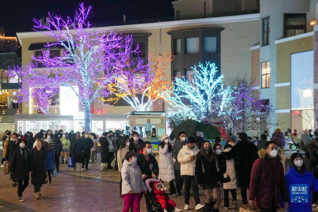 市民在北京市朝陽區藍色港灣購物中心購物休閑(12月24日攝)。