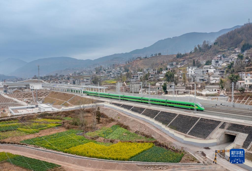12月26日, 首發列車行駛在新成昆鐵路越西段。
