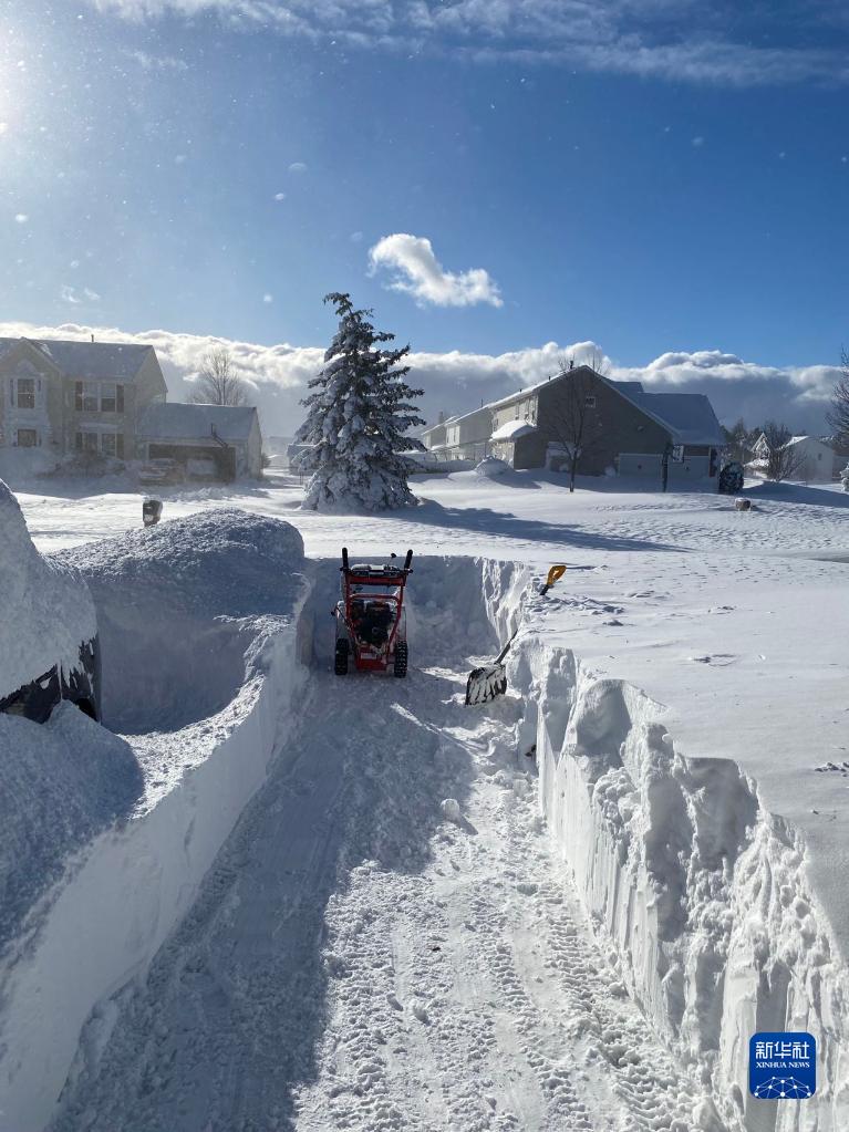這是12月25日在美國紐約州伊利縣阿默斯特地區拍攝的雪后景象。