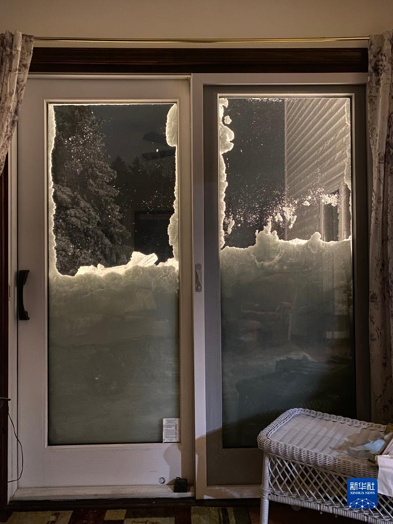 12月24日,在美國紐約州伊利縣阿默斯特地區,居民家中通往室外的推拉門近半被大雪掩埋。