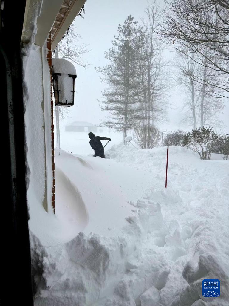 12月24日,美國紐約州伊利縣阿默斯特地區的居民在清理積雪。
