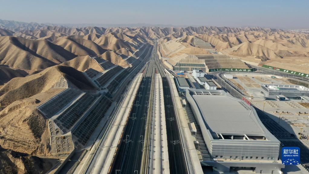 這是即將開通運營的銀蘭高鐵白銀南站(無人機照片,12月26日攝)。